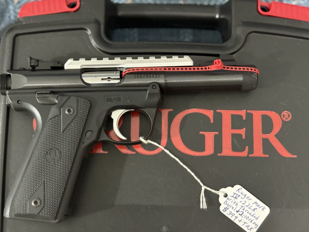 New, Never Fired, Ruger Mark IV, .22LR with Picatinny Mount Rail, Threaded Barrel, and 2-10rd magazines……$399+tax 04/28/2026 by shalin